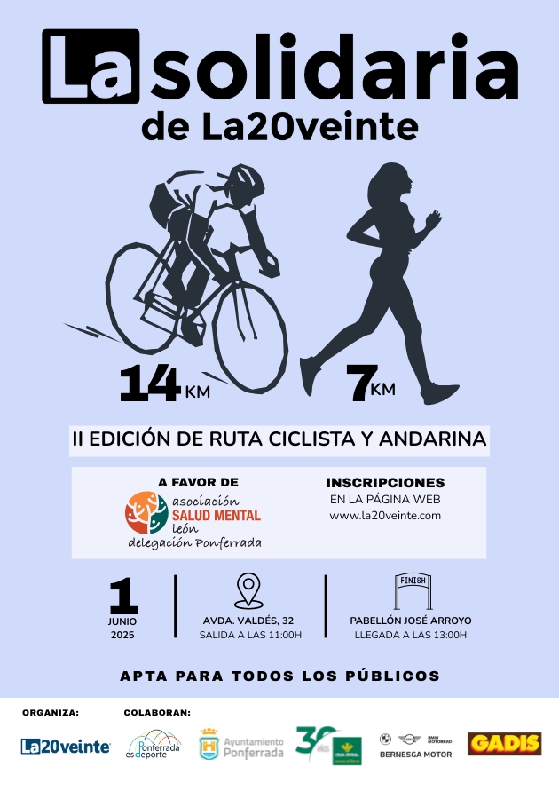 La Solidaria de La20 es una marcha no competitiva en bici y andada ideal para todos los públicos.