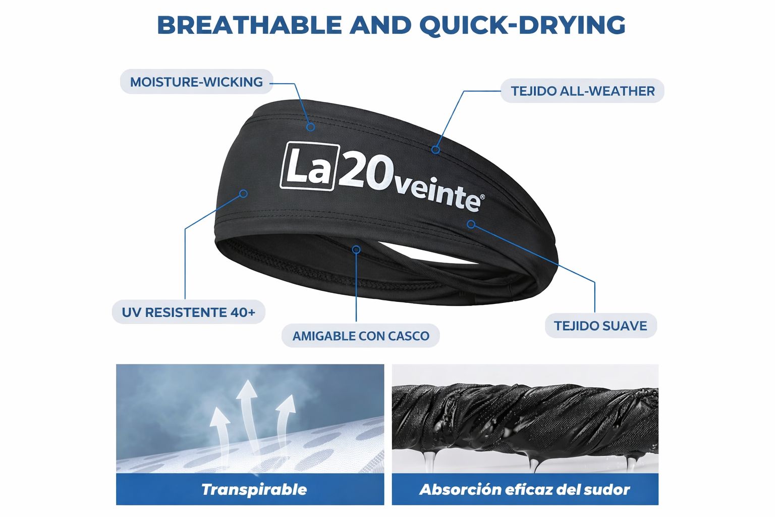 • Alta absorción del sudor